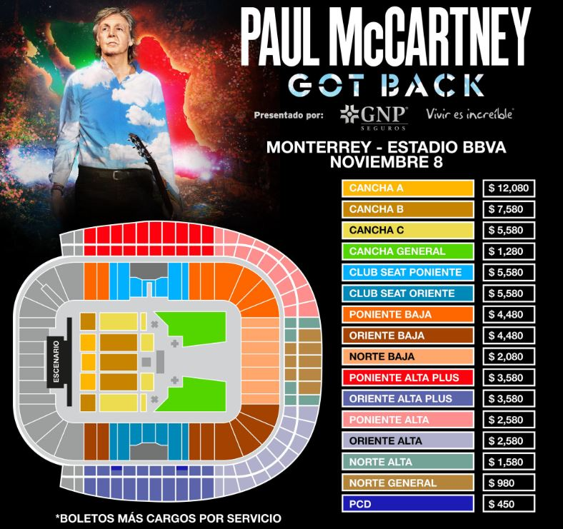 Sin embargo, Apodaca Group, la empresa encargada del concierto de Paul McCartney en Monterrey, dio a conocer los precios del show en dicha ciudad, pero a continuación te compartimos cuánto costarán los boletos con cargos por servicio incluidos.